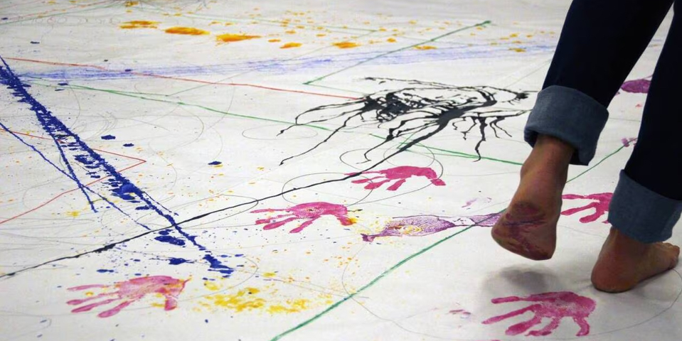 Un grand lé de papier blanc posé au sol accueille deux interprètes le temps d’une danse « chorégraphite ». Les danseuses investissent l’espace de la page blanche, utilisant différents matériaux comme prolongement de leur corps et laissant des traces. Cette pièce mêlant danse et graphisme, amène le jeune enfant à vivre des expériences sensorielles qui font écho à son désir d’exploration et de découverte. Au-delà du travail graphique, ce duo parle du rapport à l’autre dans ses similitudes ou ses différences, dans le refus ou l’acceptation.