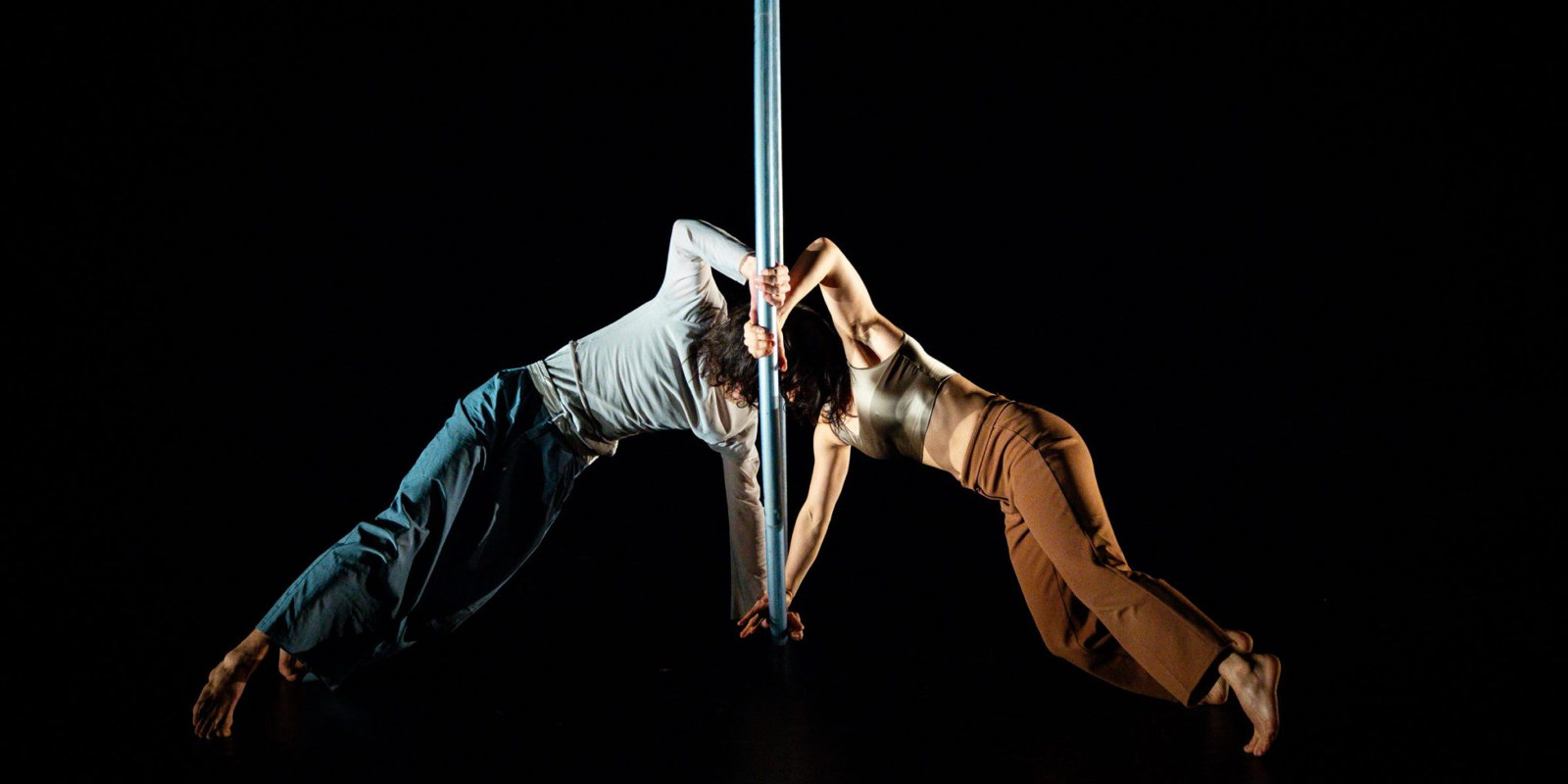 Au centre de ce duo, une roue de fer, à la fois ligne de fracture et point de rencontre. Elle est le lieu d’échange, de transformation. À travers elle, ils apprennent à communiquer, tombent ensemble, se relèvent pour recommencer. Leurs corps cherchent un langage sans grammaire donnant vie à un dialogue physique intense, à la fois métaphorique et abstrait, où la rencontre entre les différences devient leur moteur créatif.
