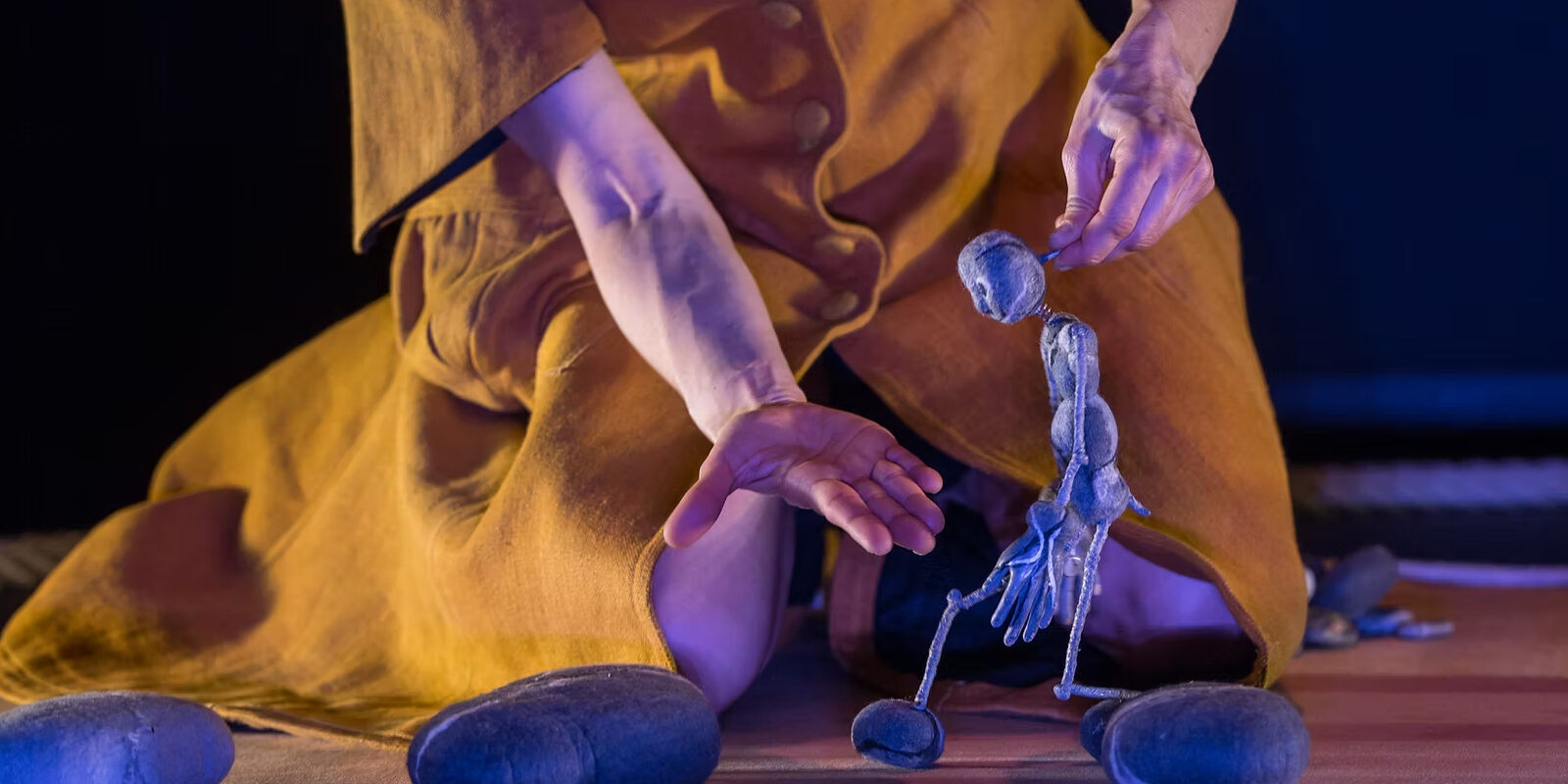 La danse, les marionnettes, la musique et les lumières créent une matière organique mouvante et enveloppante qui invite à la contemplation, et favorise l’immersion des petits spectateurs.